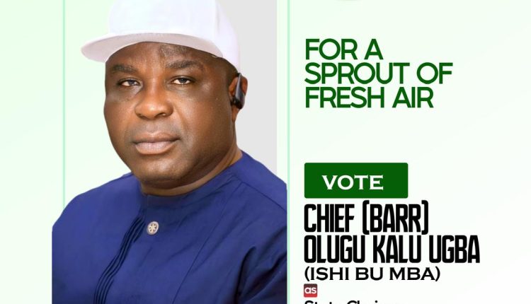 In today’s political landscape, a leader with a clear vision and mission is crucial. Chief Barr. *Olugu Kalu Ugba* is a shining example of such a leader. With a proven track record of revitalizing and revamping political initiatives, he is the breath of fresh air our party PDP needs. Unlike many politicians who make empty promises to win elections, Chief *Olugu* is a man of his word, dedicated to keeping his commitments. His leadership is built on a foundation of integrity, transparency, and accountability. As a tested and trusted political leader, Chief *Olugu Kalu Ugba* is poised to tackle the pressing issues facing our great party PDP such as reconciling with aggrieved party members who have existed from the party, returning PDP to the people, and making sure that PDP wins come 2027 governorship election in Abia state  With his vision, mission, and unwavering dedication, Chief *Olugu Kalu Ugba* is the leader we need to drive meaningful change.