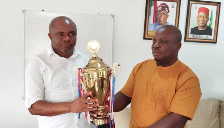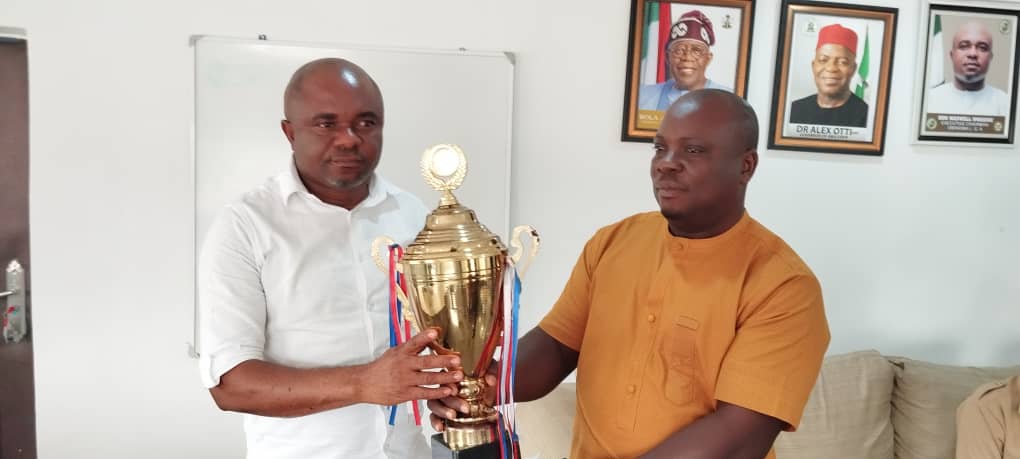 The Nigerian Union of Teachers (NUT) Obingwa LGA congratulates the Executive Chairman, Presents trophy.