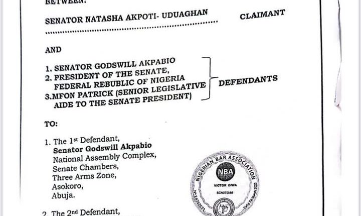 Senator Natasha Akpoti-Uduaghan has filed a defamation lawsuit against Senate President Godswill Akpabio, his aide Mfon Patrick, and the Federal Republic of Nigeria.