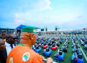 As part of his administration’s commitment to economic growth, Governor Eno distributed 77 minibuses and 31 saloon cars to beneficiaries.