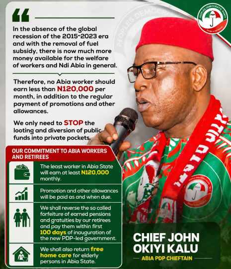Kalu, a former commissioner for information in the state, in an optimistic tone said that when his party, the PDP, takes over the government house in 2027, the least worker in Abia must earn at least N120,000 after tax as minimum wage.
